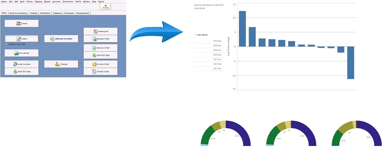 Make better decisions with your back-end data transformed into live dashboards and reports. You can see at a glance your companies position and answer key business questions. Quickly and easily create reports and dashboards to paint the picture of your stock, customers and organisation, all with real-time data.